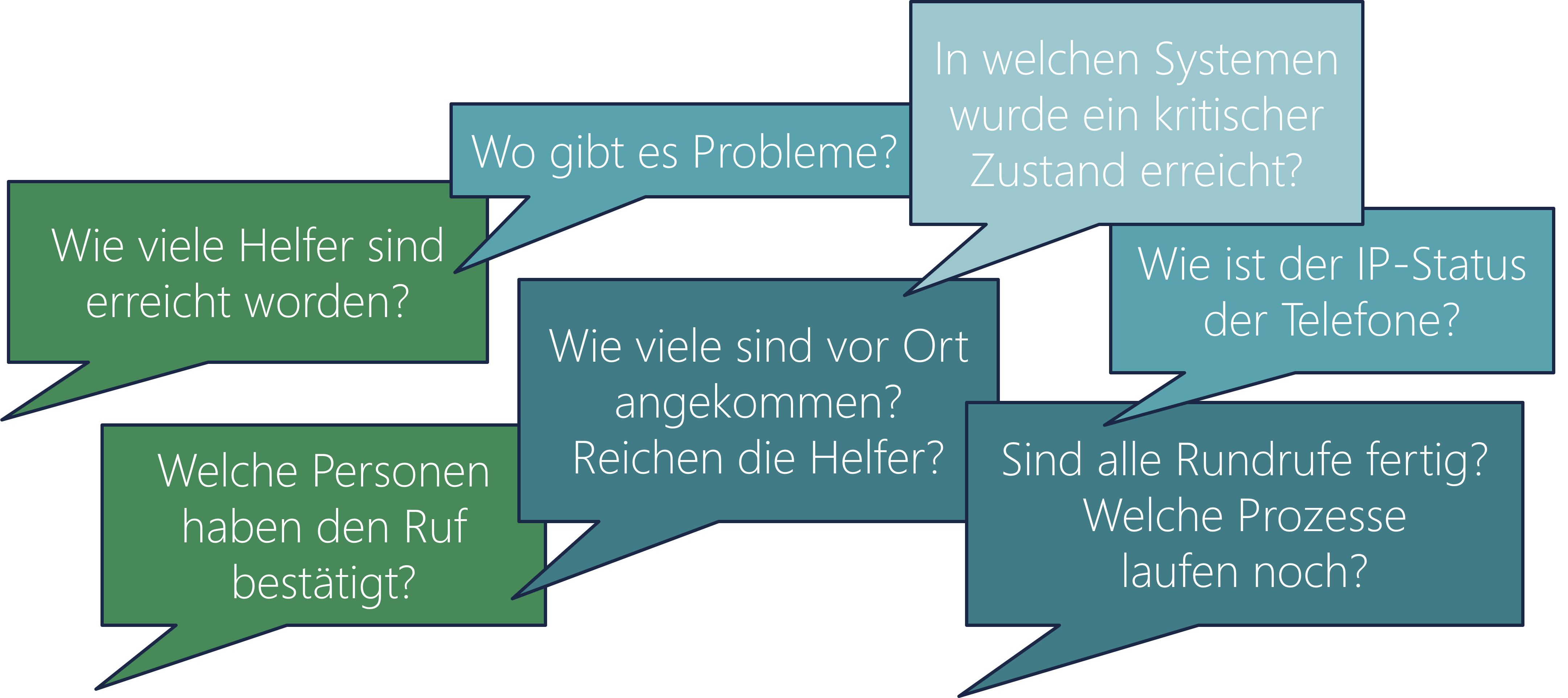 Der Notfallknopf wurde gedrückt und die nötigen Einsatzkräfte werden informiert. Richtig? Aber woran erkennt man, dass die Helfer tatsächlich informiert sind, den Auftrag angenommen haben und sich auf den Weg machen? Erst daran, dass sie (hoffentlich) eintreffen? Das Monitoring von wesentlichen Prozessen wie diesen ist ein wertvoller Bestandteil eines vollständigen und durchdachten Alarmierungskonzepts – denn wenn ich erst nach dem Verstreichen wertvoller Minuten merke, dass keine oder nicht genügend Helfer kommen und deshalb neu alarmiert werden muss, könnte es im Ernstfall schon zu spät sein, um Menschen zu retten oder großen Schaden zu vermeiden.