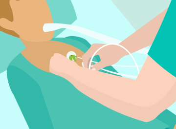 A technical alarm message is shown on the display: „Electrode off“, giving her a clear identification of her patient. Nurse Irene knows that this can wait for a brief moment, so she might finish the preparation of today's medication.