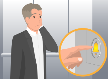 Mr. Schmidt is in the elevator on his way to the 4th floor when the elevator suddenly jerks and comes to a standstill. He has not yet reached the desired floor and even when he presses the various buttons for the different stories, nothing happens. Feeling disconcerted, he presses the button with the yellow bell.
