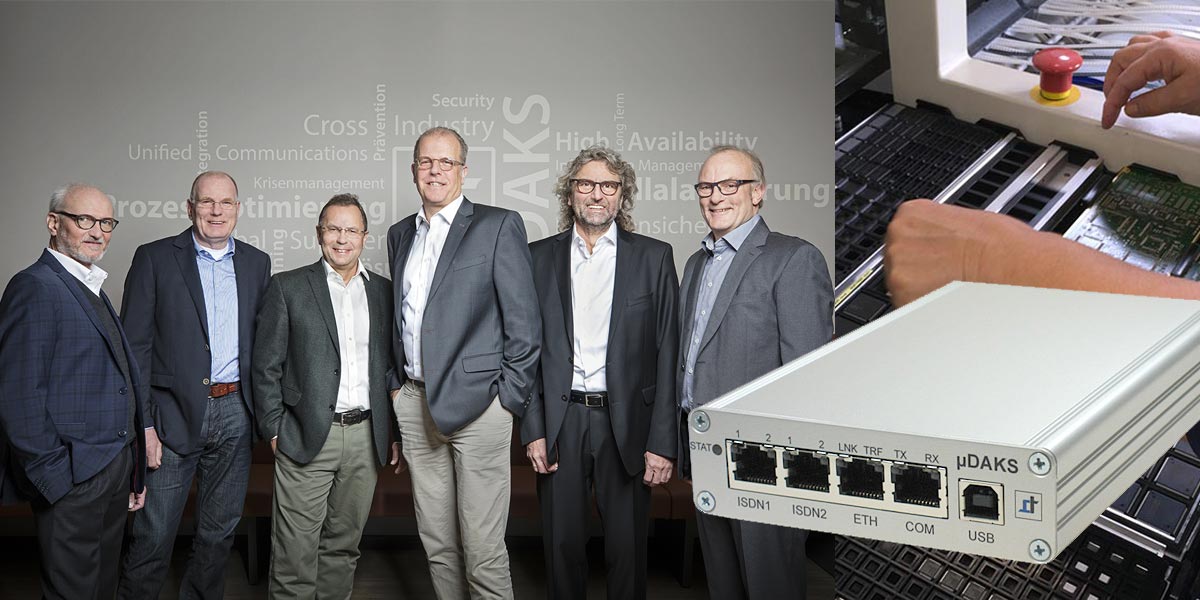 DAKS was marketed extremely successfully via Siemens in conjunction with HiPath 4000 and cordless E, especially in the health care sector. In 2008, the long-standing employees Markus Heeser, Jens-Peter Lichtenberg and Hartmut Luetz-Hawranke joined as shareholders.